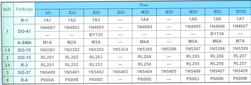 | 1N4006 | 800 | 30 | 5.0 | 1.0 | 1.1 | 0.17¢ | |