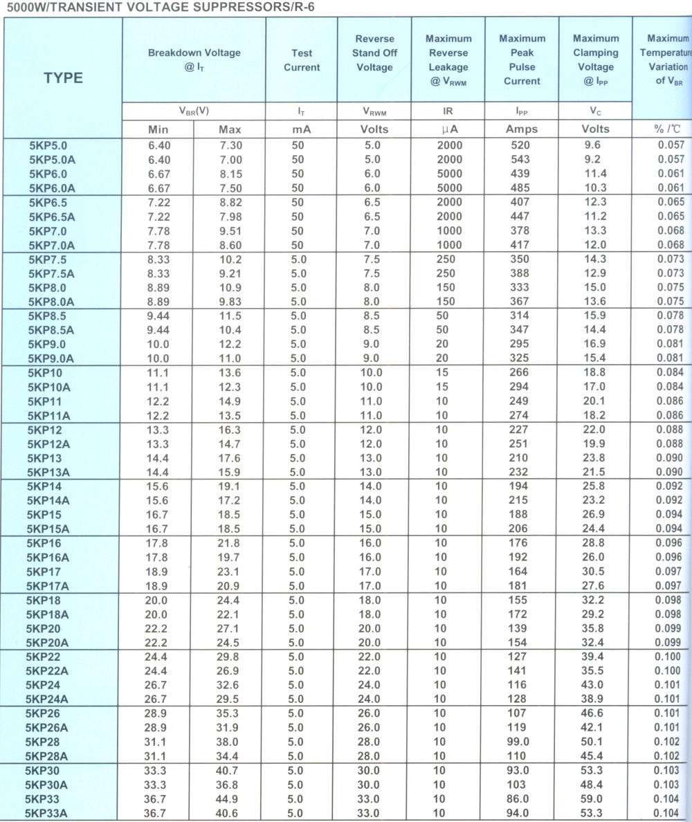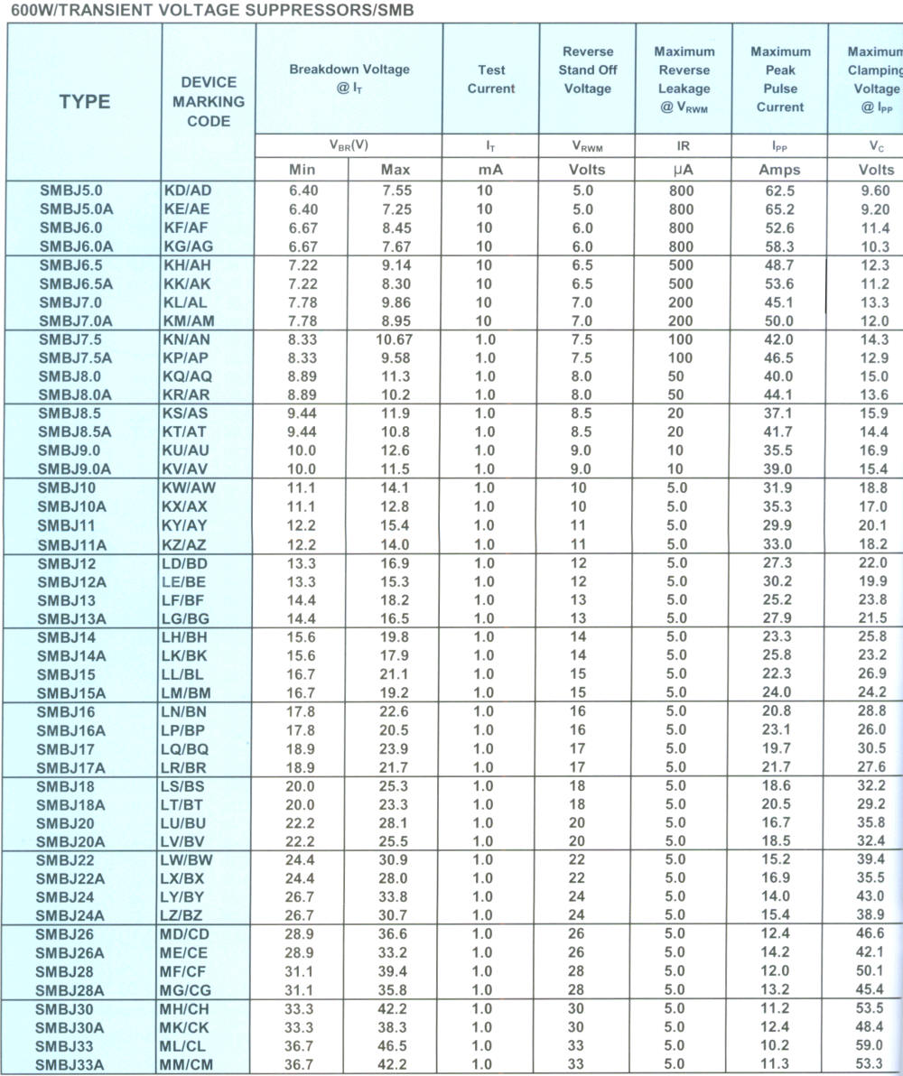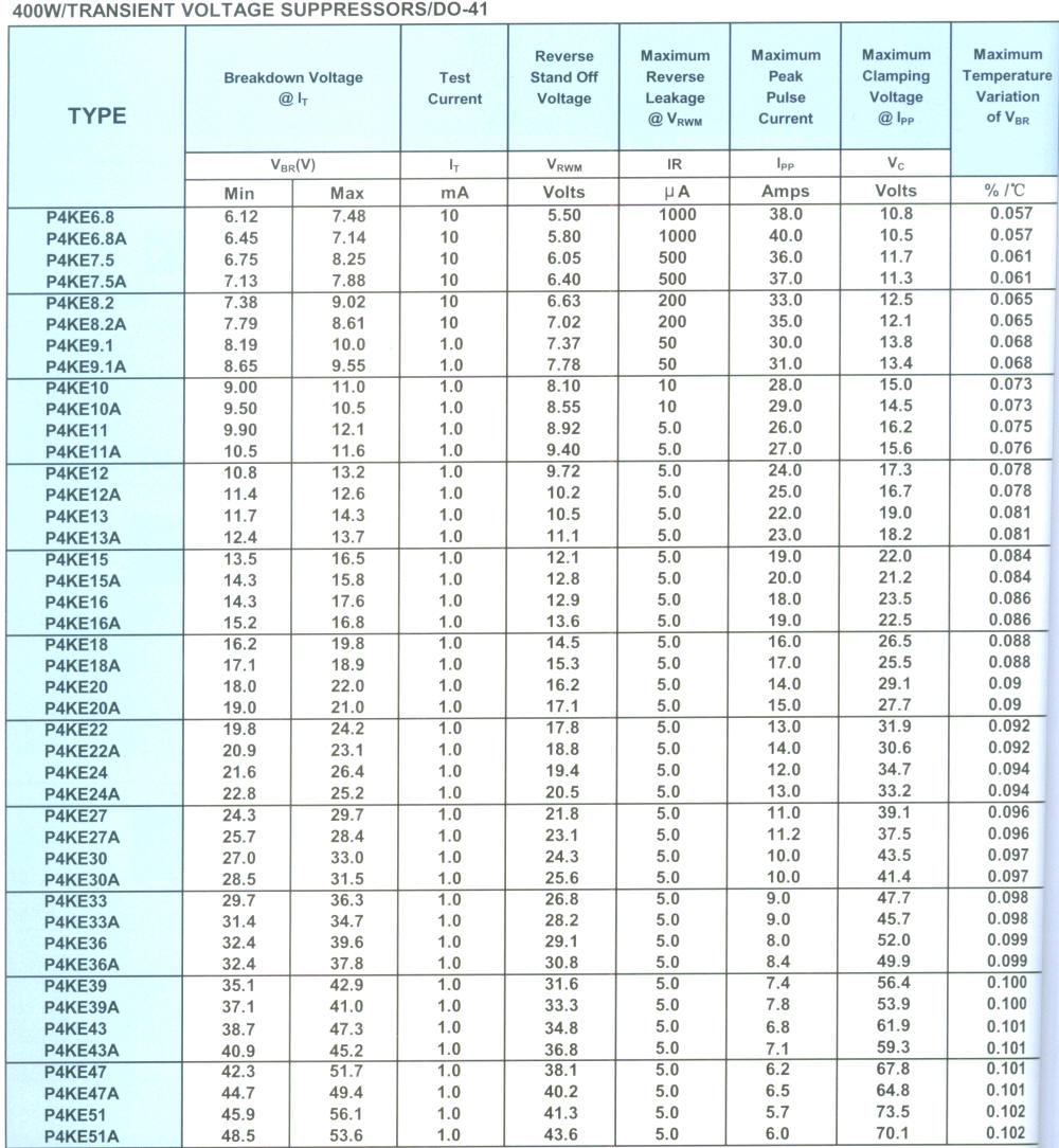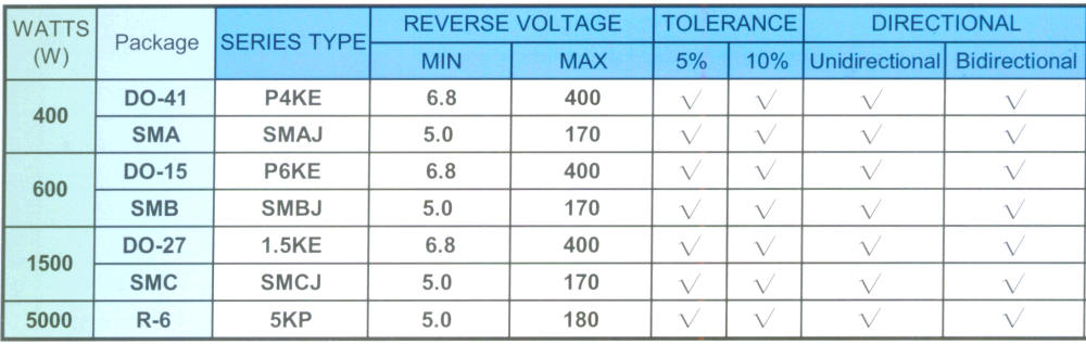 TRANSIENT VOLTAGE SUPPRESSORS